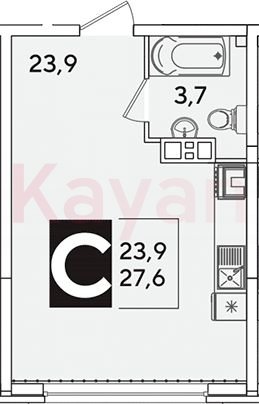 Квартира в ЖК Самолет (DOGMA. Краснодар) литер 40 очередь 6, Кирпично-монолитный, студия, 27.6 кв.м., 5/16, высота потолков: 2.89 м, жилая площадь: 23.9 кв.м., возможна ипотека, возможна военная ипотека, площадь кухни 0 кв.м.,