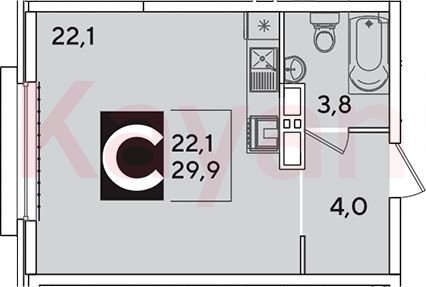 Квартира в ЖК Самолет (DOGMA. Краснодар) литер 41 очередь 6, Кирпично-монолитный, студия, 29.9 кв.м., 11/16, высота потолков: 2.89 м, жилая площадь: 22.1 кв.м., возможна ипотека, возможна военная ипотека, площадь кухни 0 кв.м.,