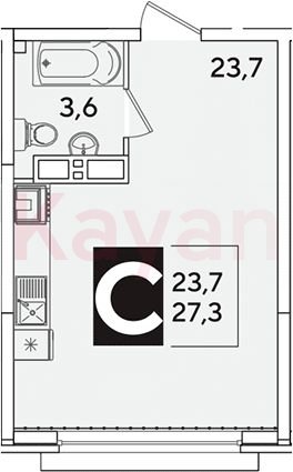 Квартира в ЖК Самолет (DOGMA. Краснодар) литер 42 очередь 6, Кирпично-монолитный, студия, 27.3 кв.м., 14/16, высота потолков: 2.89 м, жилая площадь: 23.7 кв.м., возможна ипотека, возможна военная ипотека, площадь кухни 0 кв.м.,