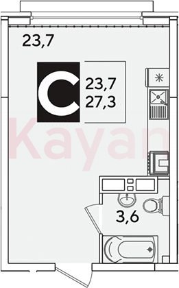 Продажа студии, 27.3 кв.м