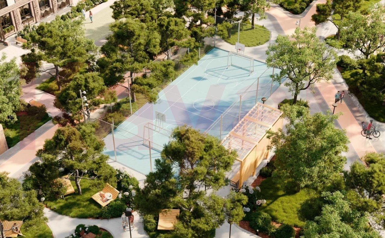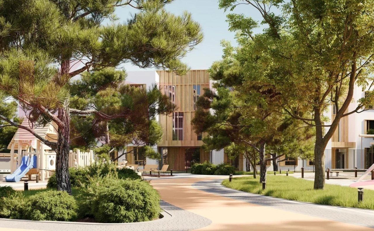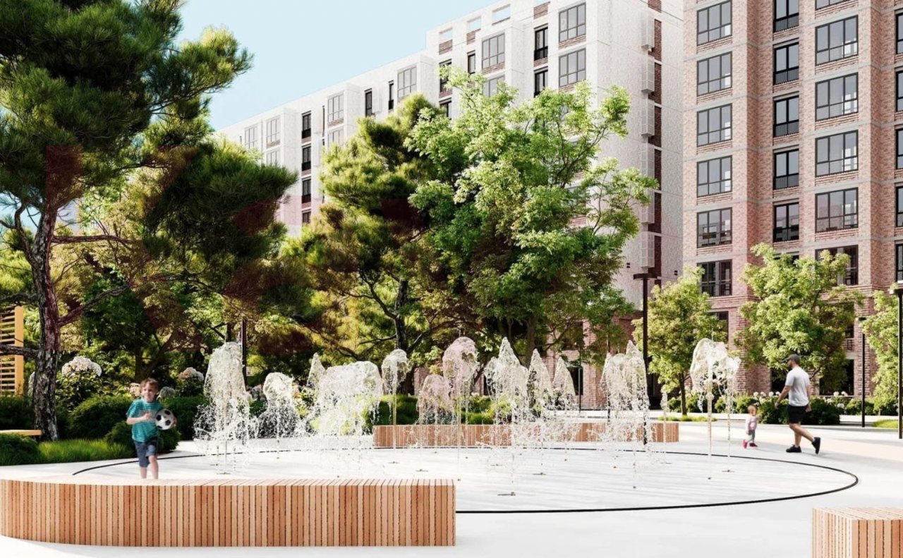 На территории комплекса расположен свой детский сад, несколько спортивных и детских площадок, прогулочные зоны, места для отдыха, велодорожки. Организовано внутреннее озеленение. Закрытая территория делает двор максимально уютным и безопасным. В проекте реализована концепция «двор без машин». Для владельцев автомобилей предусмотрен наземный паркинг.