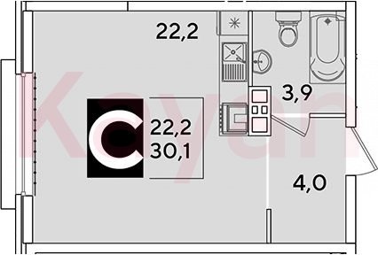Квартира в ЖК Самолет (DOGMA. Краснодар) литер 63 очередь 6, Кирпично-монолитный, студия, 30.1 кв.м., 4/16, высота потолков: 2.89 м, жилая площадь: 22.2 кв.м., возможна ипотека, возможна военная ипотека, площадь кухни 0 кв.м.,