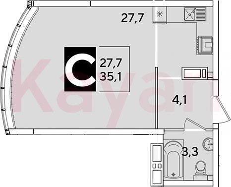 Квартира в ЖК Самолет (DOGMA. Краснодар) литер 63 очередь 6, Кирпично-монолитный, студия, 35.1 кв.м., 15/16, высота потолков: 2.89 м, жилая площадь: 27.7 кв.м., возможна ипотека, возможна военная ипотека, площадь кухни 0 кв.м.,