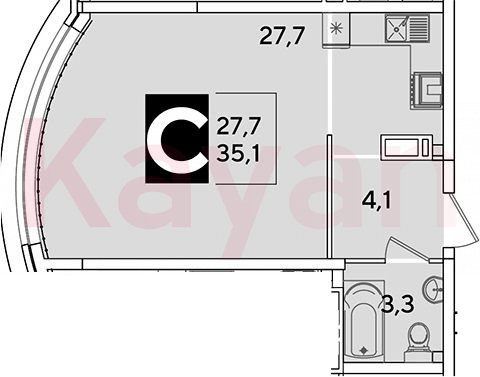 Квартира в ЖК Самолет (DOGMA. Краснодар) литер 61 очередь 6, Кирпично-монолитный, студия, 35.1 кв.м., 14/16, высота потолков: 2.89 м, жилая площадь: 27.7 кв.м., возможна ипотека, возможна военная ипотека, площадь кухни 0 кв.м.,