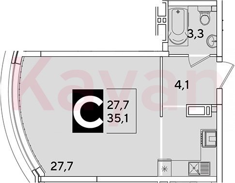 Квартира в ЖК Самолет (DOGMA. Краснодар) литер 65 очередь 6, Кирпично-монолитный, студия, 35.1 кв.м., 11/16, высота потолков: 2.89 м, жилая площадь: 27.7 кв.м., возможна ипотека, возможна военная ипотека, площадь кухни 0 кв.м.,