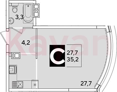 Квартира в ЖК Самолет (DOGMA. Краснодар) литер 66 очередь 6, Кирпично-монолитный, студия, 35.2 кв.м., 4/16, высота потолков: 2.89 м, жилая площадь: 27.7 кв.м., возможна ипотека, возможна военная ипотека, площадь кухни 0 кв.м.,