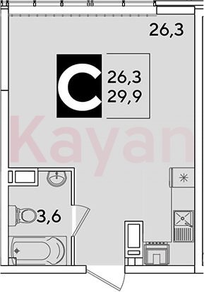 Квартира в ЖК Самолет (DOGMA. Краснодар) литер 63 очередь 6, Кирпично-монолитный, студия, 29.9 кв.м., 15/16, высота потолков: 2.89 м, жилая площадь: 26.3 кв.м., возможна ипотека, возможна военная ипотека, площадь кухни 0 кв.м.,