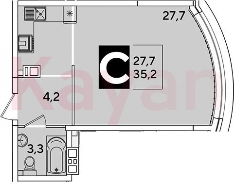Квартира в ЖК Самолет (DOGMA. Краснодар) литер 36 очередь 6, Кирпично-монолитный, студия, 35.2 кв.м., 4/16, высота потолков: 2.89 м, жилая площадь: 27.7 кв.м., возможна ипотека, возможна военная ипотека, площадь кухни 0 кв.м.,