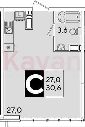 Продажа студии, 30.6 кв.м