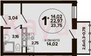 Квартира в ЖК «Гулливер» (ЕкатеринодарИнвестСтрой) литер 3 очередь 2, Кирпично-монолитный, студия, 22.97 кв.м., 8/24, высота потолков: 2.72 м, жилая площадь: 16.77 кв.м., возможна ипотека, возможна военная ипотека, площадь кухни 0 кв.м.,