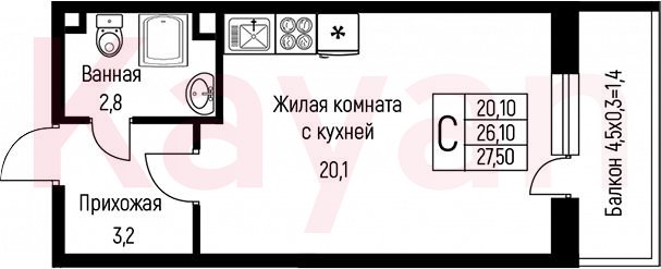 Продажа студии, 27.7 кв.м