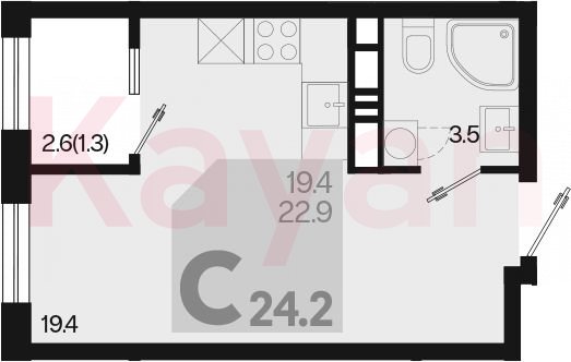 Продажа студии, 22.9 кв.м