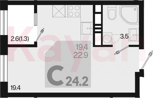Квартира в ЖК «Первое место» (ГК Точно. Краснодарский край) литер 1.10 Л1 очередь 1, Монолитный, студия, 22.9 кв.м., 16/18, высота потолков: 2.66 м, жилая площадь: 19.4 кв.м., возможна ипотека, возможна военная ипотека, площадь кухни 0 кв.м.,