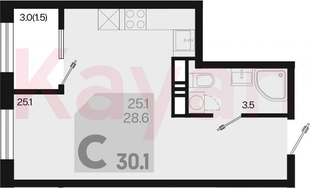 Продажа студии, 28.6 кв.м