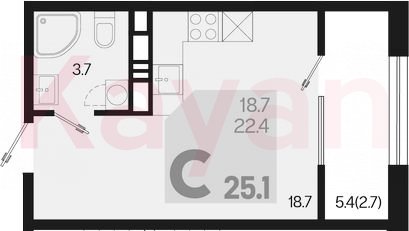 Продажа студии, 22.4 кв.м