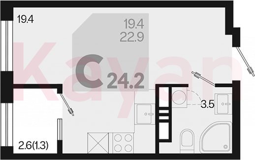 Продажа студии, 22.9 кв.м