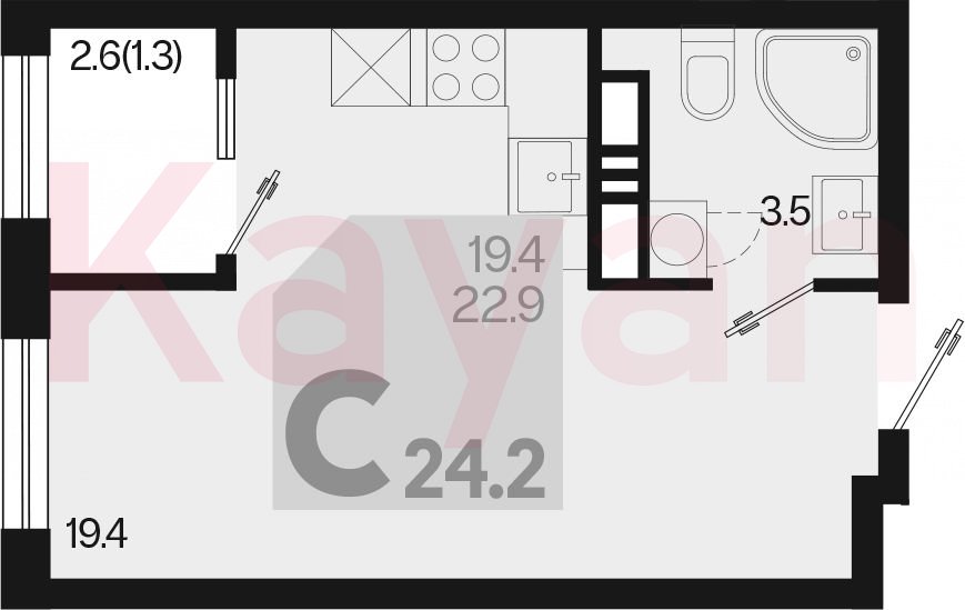 Продажа студии, 22.9 кв.м