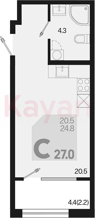 Продажа студии, 24.8 кв.м