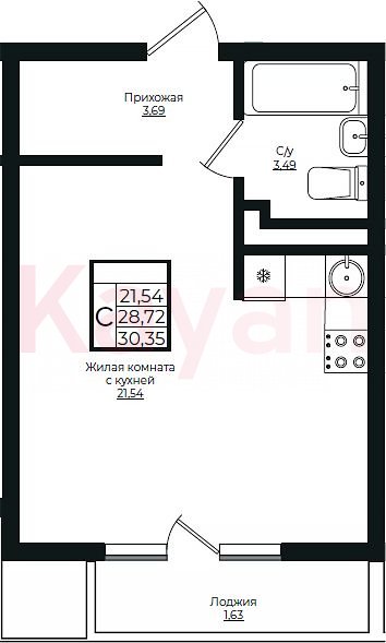 Продажа студии, 28.72 кв.м