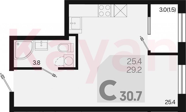 Продажа студии, 29.2 кв.м