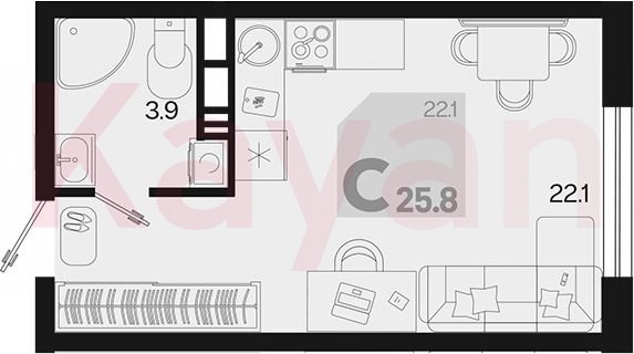 Продажа студии, 25.8 кв.м