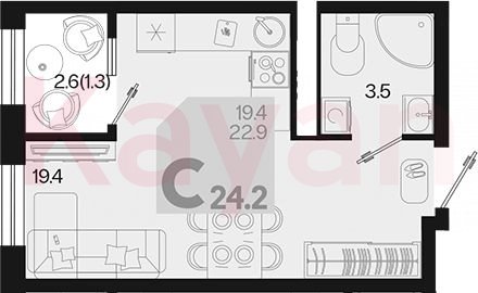 Продажа студии, 22.9 кв.м