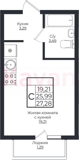Продажа студии, 26.06 кв.м