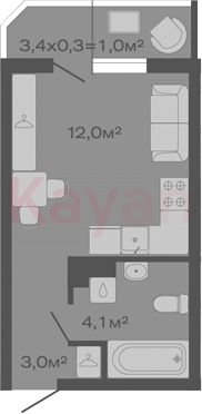 Квартира в ЖК «ДЗЕНПАРК» (Лендекс) литер 5 очередь 1, Кирпично-монолитный, студия, 19.1 кв.м., 4/4, высота потолков: 2.7 м, жилая площадь: 12 кв.м., возможна ипотека, возможна военная ипотека, площадь кухни 0 кв.м.,