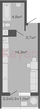 Продажа студии, 21.8 кв.м