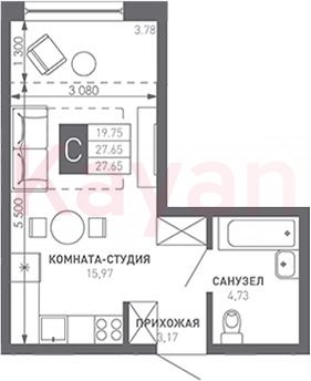 Продажа студии, 27.65 кв.м
