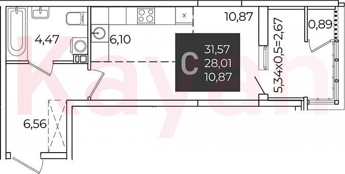Квартира в ЖК «Микрорайон Образцово» (ИНСИТИ) литер 18 очередь 1, Монолитный, студия, 28.01 кв.м., 3/21, высота потолков: 2.74 м, жилая площадь: 16.97 кв.м., возможна ипотека, возможна военная ипотека, площадь кухни 0 кв.м.,