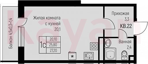 Продажа студии, 27.5 кв.м