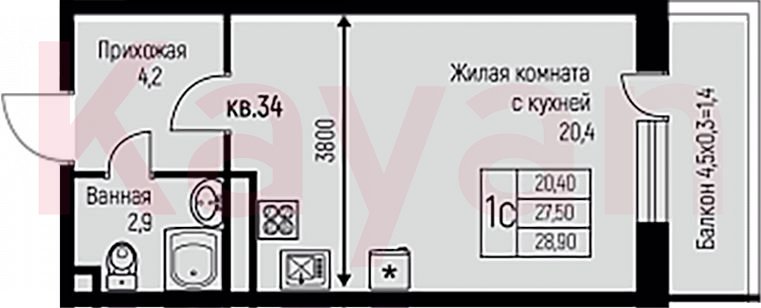Продажа студии, 27.5 кв.м