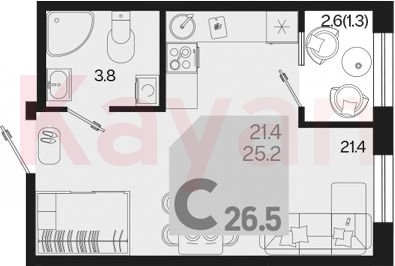 Продажа студии, 25.2 кв.м