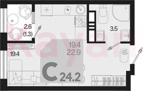 Продажа студии, 22.9 кв.м