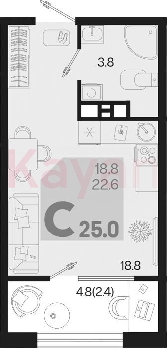 Продажа студии, 22.6 кв.м