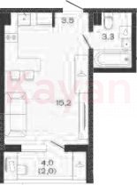 Квартира в ЖК «ДЗЕНПАРК» (Лендекс) литер 2 очередь 1, Кирпично-монолитный, студия, 22 кв.м., 1/4, высота потолков: 2.7 м, жилая площадь: 15.2 кв.м., возможна ипотека, возможна военная ипотека, площадь кухни 0 кв.м.,