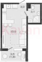 Квартира в ЖК «ДЗЕНПАРК» (Лендекс) литер 2 очередь 1, Кирпично-монолитный, студия, 19.1 кв.м., 2/4, высота потолков: 2.7 м, жилая площадь: 13 кв.м., возможна ипотека, возможна военная ипотека, площадь кухни 0 кв.м.,