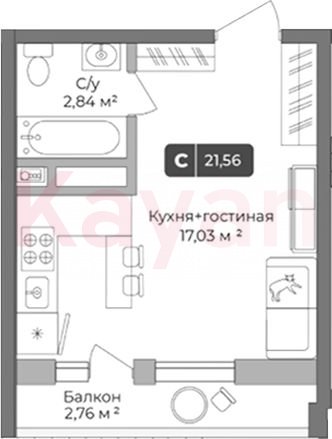 Продажа студии, 20.73 кв.м