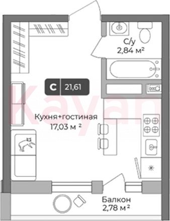 Квартира в ЖК «Цитрус» (СЗ Среда) литер 1 очередь 1, Монолитный, студия, 20.78 кв.м., 1/10, высота потолков: 2.8 м, жилая площадь: 17.42 кв.м., возможна ипотека, площадь кухни 0 кв.м.,
