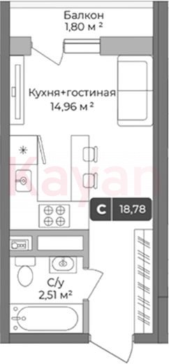 Продажа студии, 18.24 кв.м