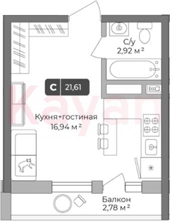 Квартира в ЖК «Цитрус» (СЗ Среда) литер 2 очередь 1, Монолитный, студия, 20.78 кв.м., 10/10, высота потолков: 2.8 м, жилая площадь: 17.42 кв.м., возможна ипотека, площадь кухни 0 кв.м.,