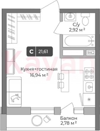 Квартира в ЖК «Цитрус» (СЗ Среда) литер 2 очередь 1, Монолитный, студия, 20.78 кв.м., 7/10, высота потолков: 2.8 м, жилая площадь: 17.42 кв.м., возможна ипотека, площадь кухни 0 кв.м.,
