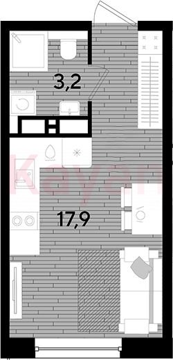 Квартира в ЖК «Dogma park (Догма парк)» (DOGMA. Краснодар) литер 30 очередь 3, Кирпично-монолитный, студия, 21.1 кв.м., 12/16, высота потолков: 2.72 м, жилая площадь: 17.9 кв.м., возможна ипотека, возможна военная ипотека, площадь кухни 0 кв.м.,