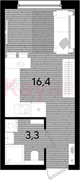 Квартира в ЖК «Dogma park (Догма парк)» (DOGMA. Краснодар) литер 32 очередь 3, Кирпично-монолитный, студия, 19.7 кв.м., 2/16, высота потолков: 2.72 м, жилая площадь: 16.4 кв.м., возможна ипотека, возможна военная ипотека, площадь кухни 0 кв.м.,