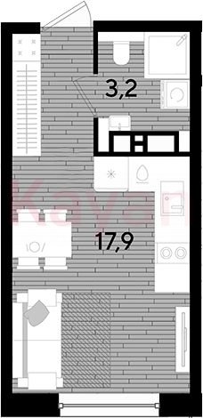 Квартира в ЖК «Dogma park (Догма парк)» (DOGMA. Краснодар) литер 33 очередь 3, Кирпично-монолитный, студия, 21.1 кв.м., 11/16, высота потолков: 2.72 м, жилая площадь: 17.9 кв.м., возможна ипотека, возможна военная ипотека, площадь кухни 0 кв.м.,