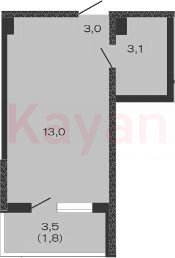 Квартира в ЖК «ДЗЕНПАРК» (Лендекс) литер 1 очередь 1, Монолитный, студия, 19.1 кв.м., 1/4, высота потолков: 2.7 м, жилая площадь: 13 кв.м., возможна ипотека, возможна военная ипотека, площадь кухни 0 кв.м.,