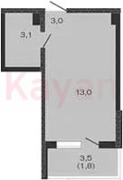 Квартира в ЖК «ДЗЕНПАРК» (Лендекс) литер 1 очередь 1, Монолитный, студия, 19.1 кв.м., 4/4, высота потолков: 2.7 м, жилая площадь: 13 кв.м., возможна ипотека, возможна военная ипотека, площадь кухни 0 кв.м.,