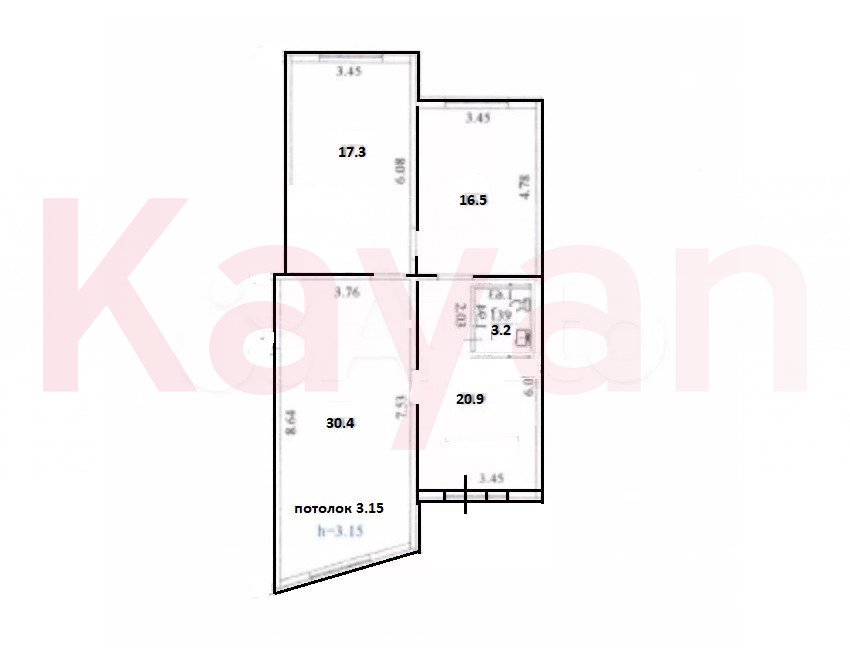 В помещении 4 больших комнаты 30+21+17.3+16.5 кв.м и санузел .