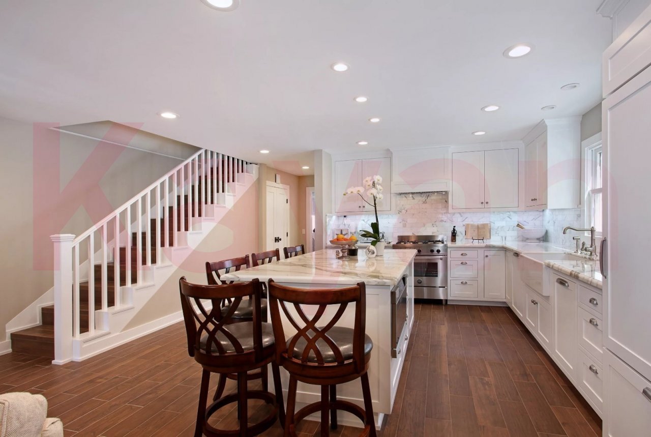На втором этаже три изолированные комнаты и кухня (15кв м ) , все в качественной предчистовой отделке .